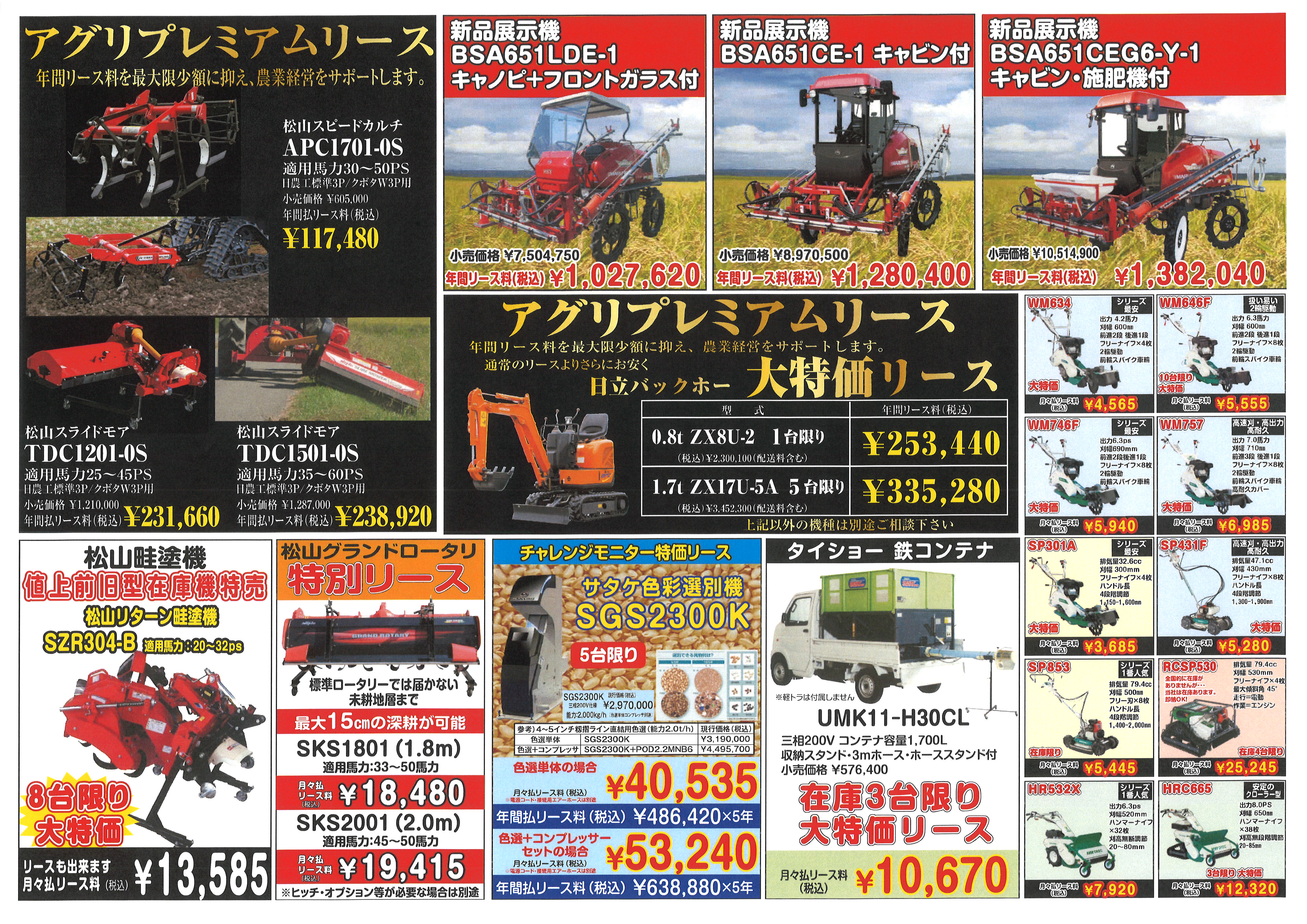家庭菜園・小規模農家の方に特価でリースいたします